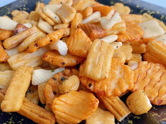 As formas diferentes dos biscoitos do arroz, com seus gostos diferentes e formas bonitos, são populares com todos