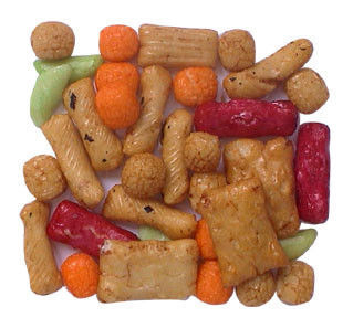 Arroz, amendoim, amido das tapiocas, amido, dextrina de Malto, açúcar, molho de soja, sal, alga, E160c, E150c