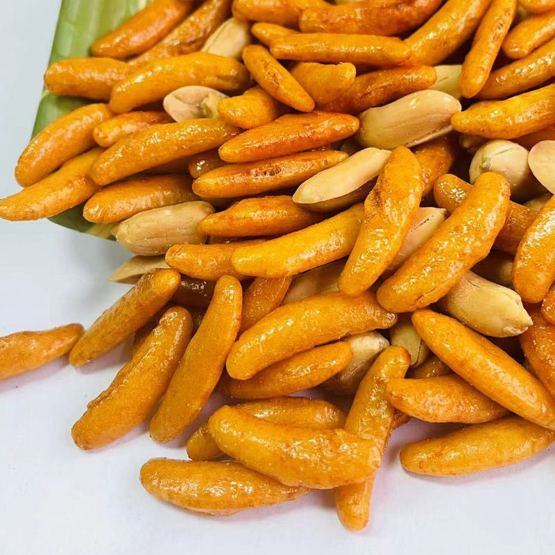 Biscoito friável do arroz do petisco saudável com o petisco japonês dos biscoitos do arroz do núcleo do amendoim