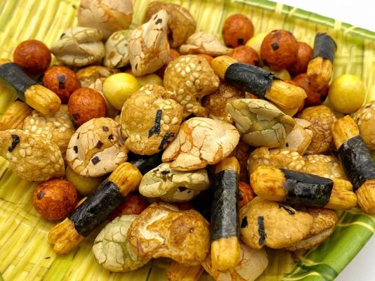 Índices | Arroz, amendoins, farinha, amido, alga, sésamo, sal, açúcar, etc. glutinosos. |
