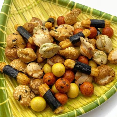 Na fragrância natural do biscoito do arroz, misturada com o sabor delicioso do amendoim e da alga.
