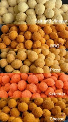 Amendoim, farinha de trigo, amido de milho, açúcar, dextrina de Malto, alga, E102, E133