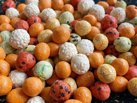 Amendoim, farinha de trigo, amido de milho, açúcar, dextrina de Malto, alga, sésamo, E102, E133, E122, E110, E150c