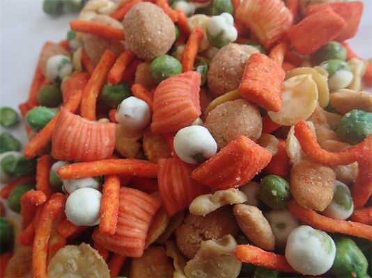 Um petisco da combinação dos amendoins misturados com os feijões verdes e as favas misturou feijões