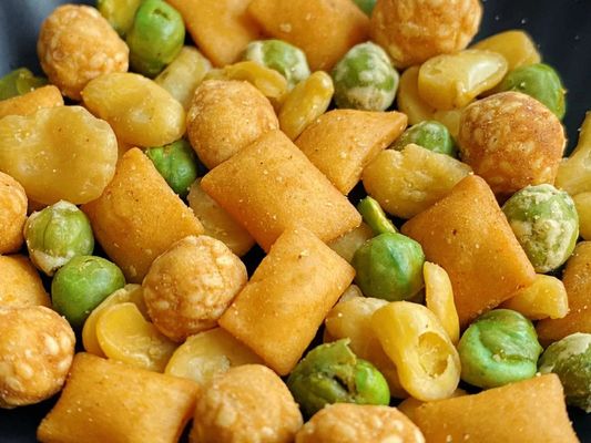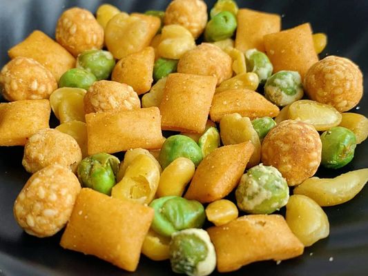 Os biscoitos tailandeses asiáticos do estilo misturados com os amendoins das ervilhas personalizaram o petisco sortido da porca da mistura