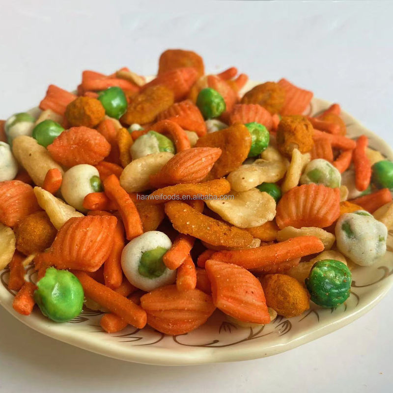 Feijões verdes das favas misturadas por atacado com o petisco japonês da mistura da fuga do biscoito das tiras do arroz