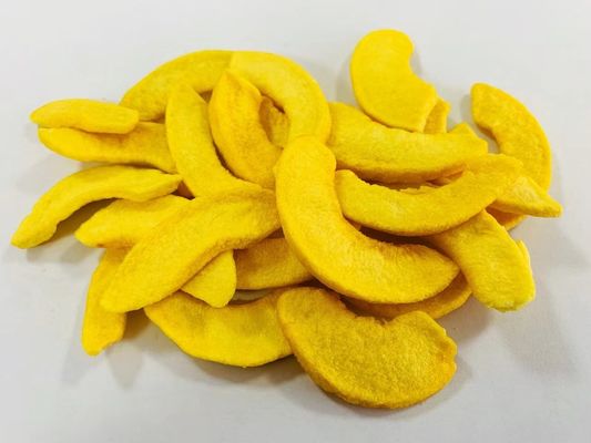 Lanches saudáveisAs fatias de pêssego amarelo liofilizadas são leves, crocantes e satisfatoriamente doces.tornando-os uma excelente alternativa aos lanches açucarados.