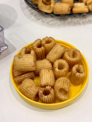 Descrição: Deliciosas e crocantes bolachas de arroz frito, perfeitas para lanches.