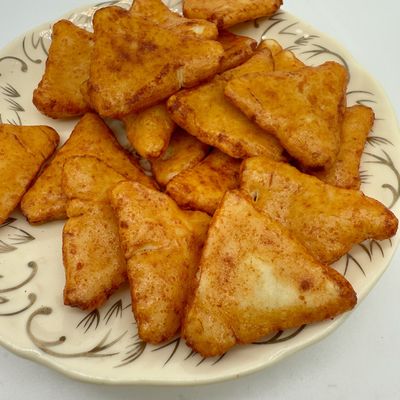 Descrição: Deliciosas e crocantes bolachas de arroz frito perfeitas para lanches a qualquer hora do dia.